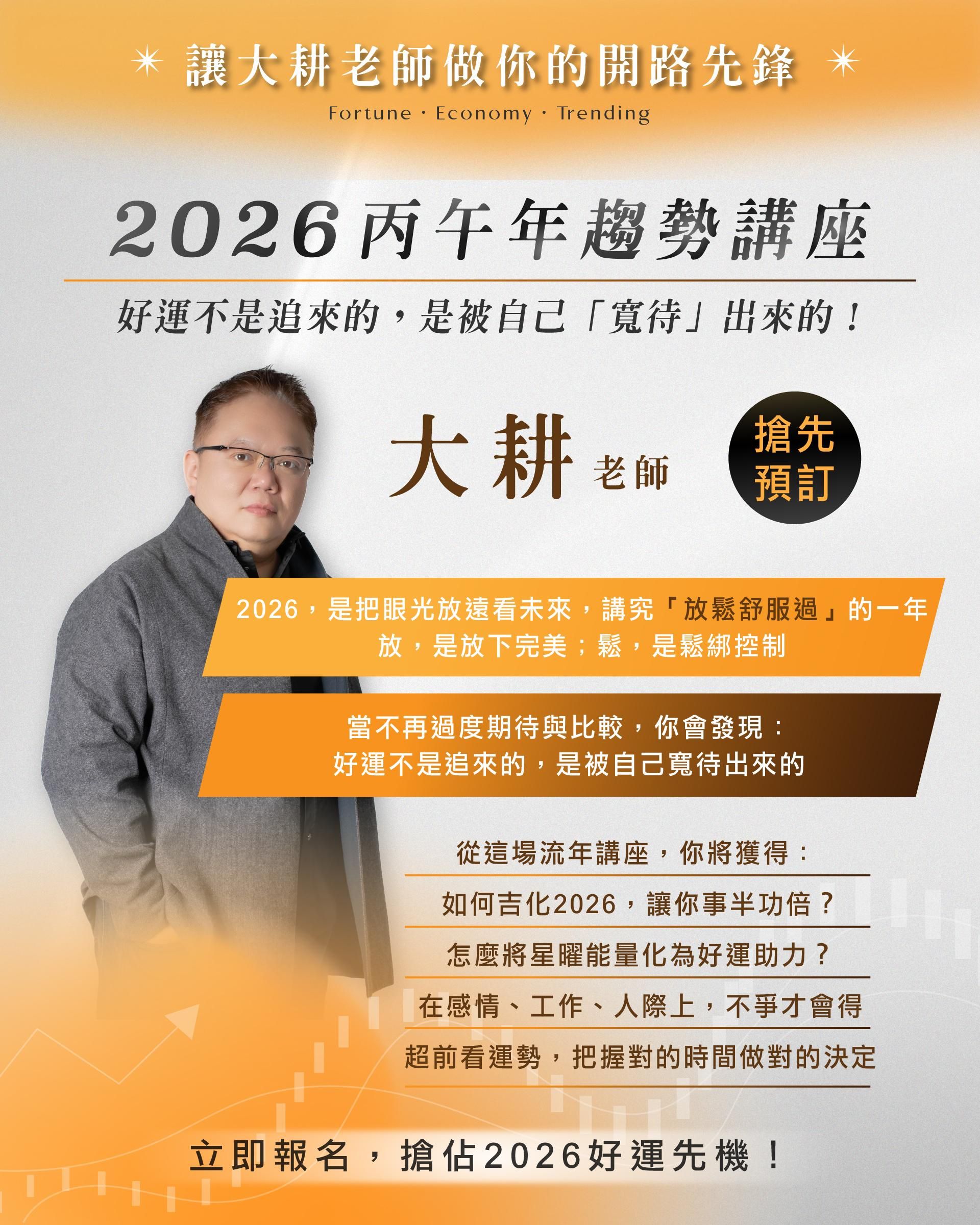 這是一場實用又好懂的運勢講座,帶你精準掌握2026年的趨勢訊息,打造好運節奏。