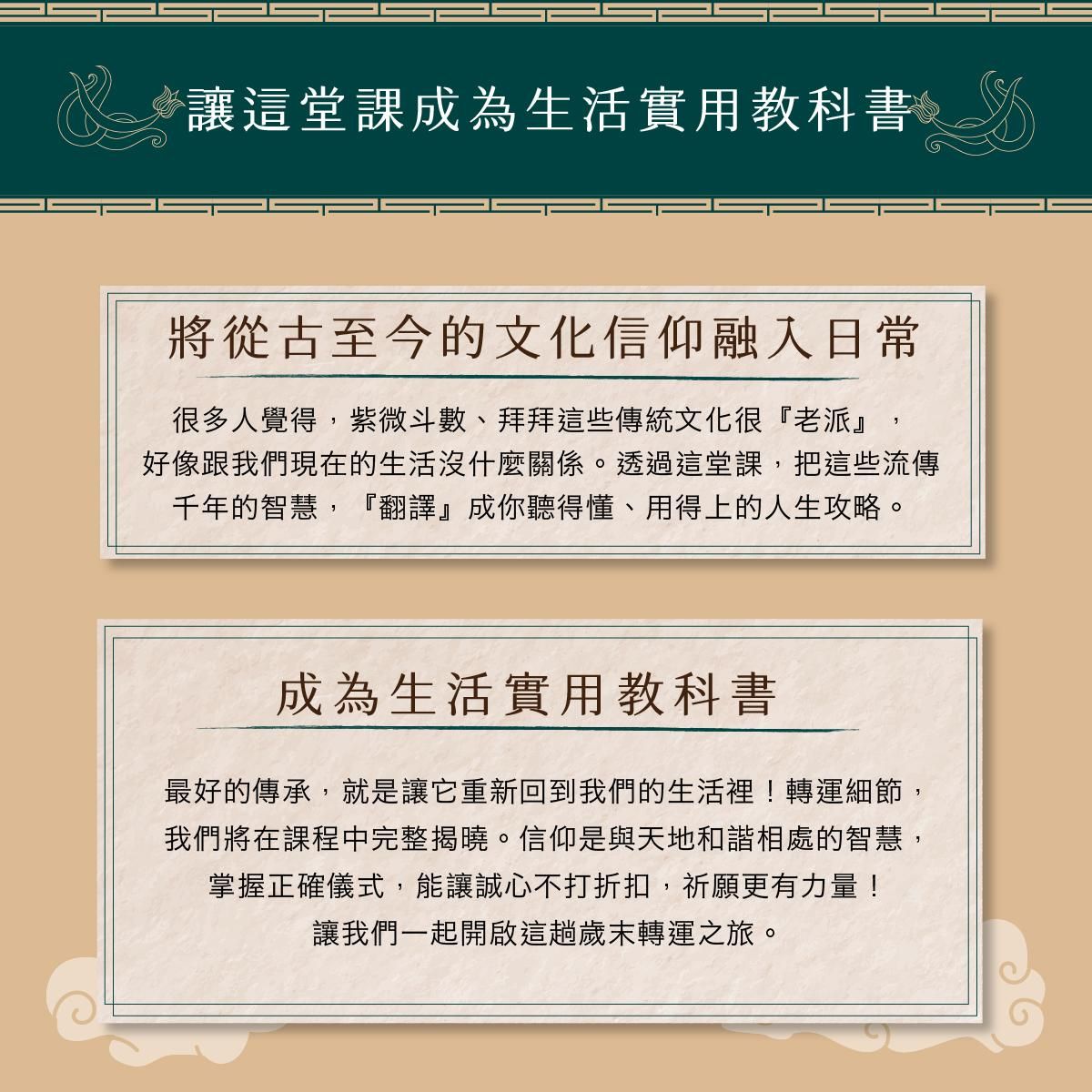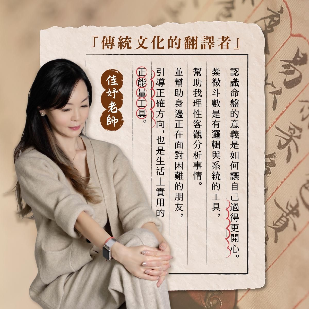 佳妤老師深耕傳統道法與紫微斗數多年,這堂課將化身為「傳統文化的翻譯者」,