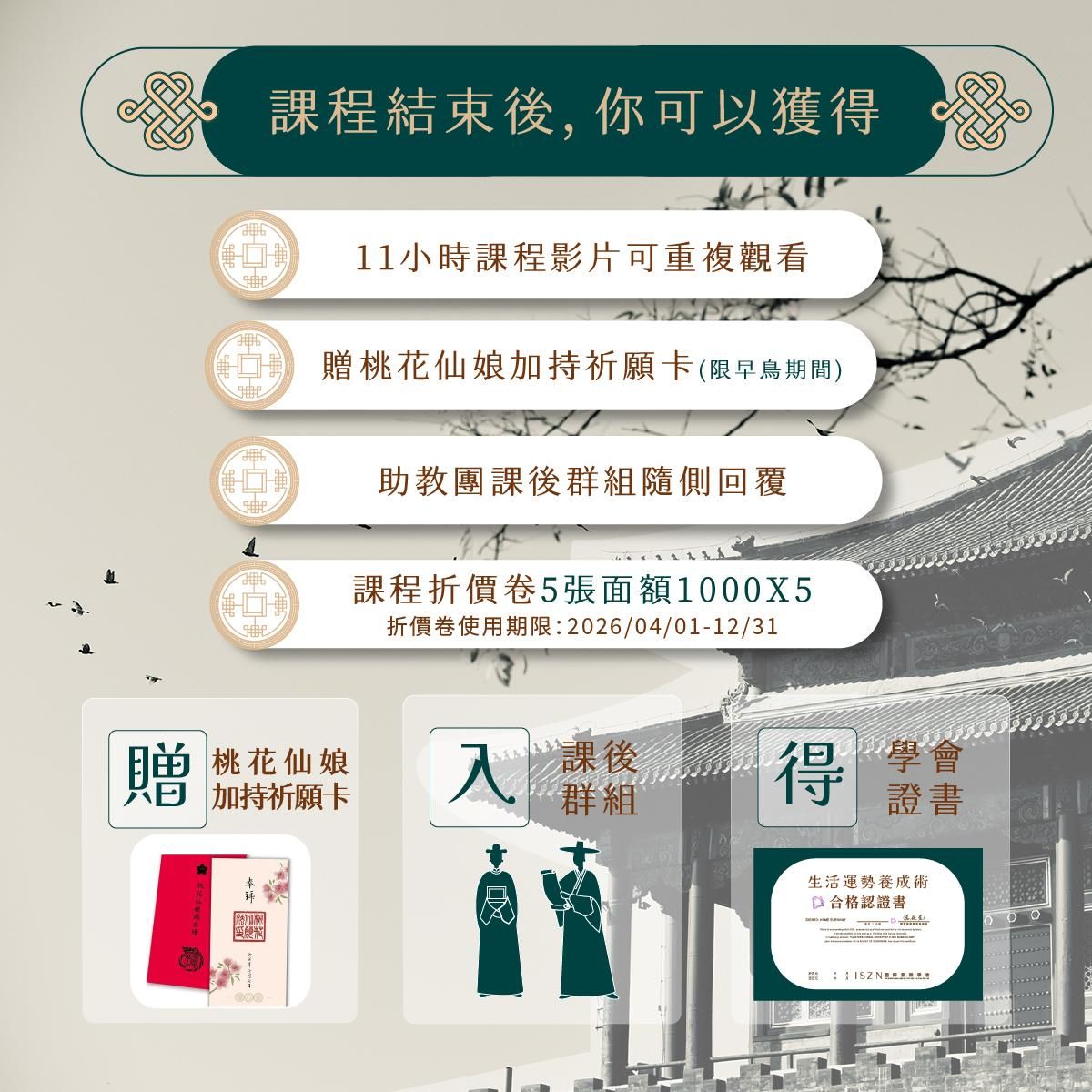 ࿊早鳥限定贈禮:報名即贈「桃花仙娘加持祈願卡」,助你人緣桃花滿滿。
